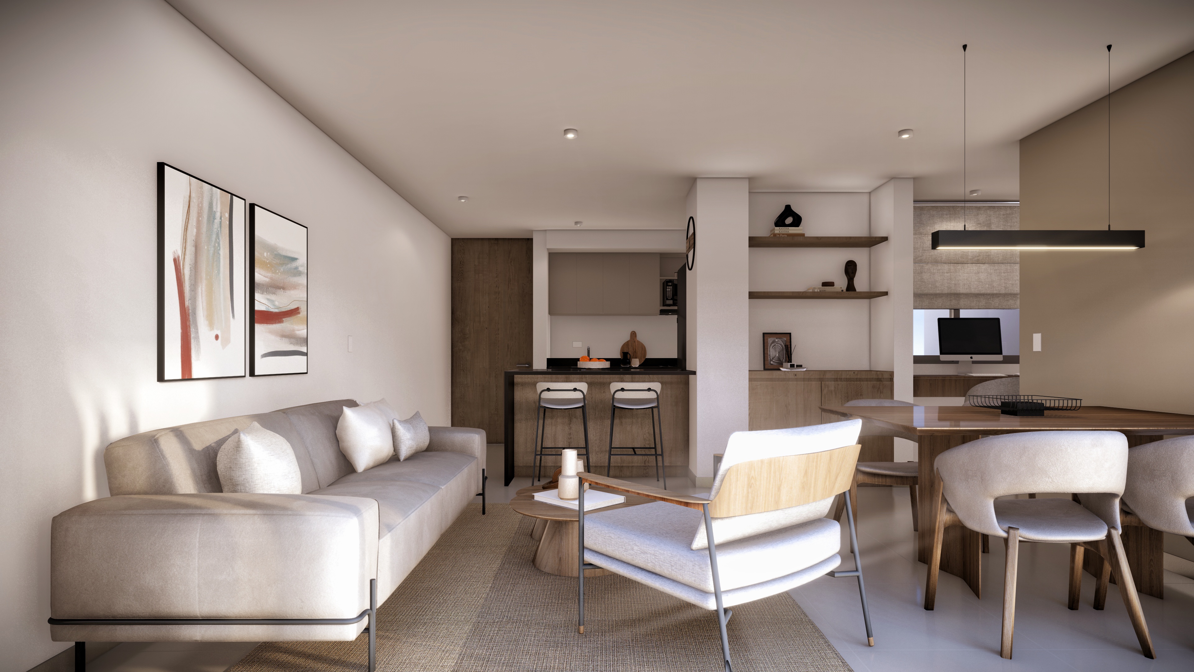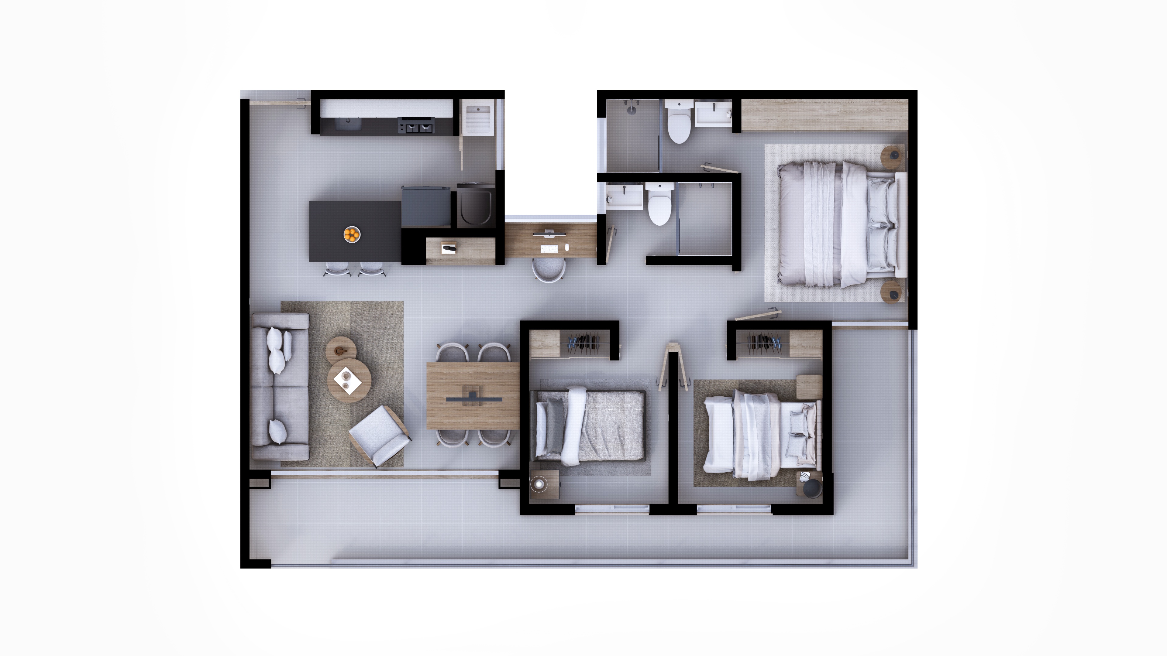 Área Construida vendible: 73.66 m² Área privada : 57.50 m² Área común construida (muros): 8,26 m² Área común construida de uso exclusivo (balcón): 7,90 m² Área privada libre: 8.33 m²